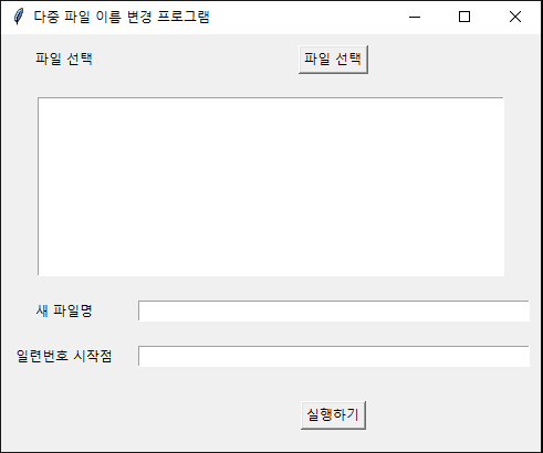 새 파일명을 입력하지 않았거나, 일련번호 시작점을 입력하지 않은 경우 프로그램이 동작하지 않을 수 있습니다. 모든 필드를 확인하고 다시 실행해보세요.