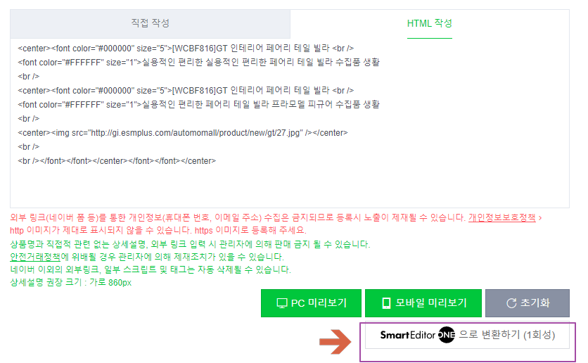 스마트스토어 태그등록 및 SmartEditorOne 변환 서비스