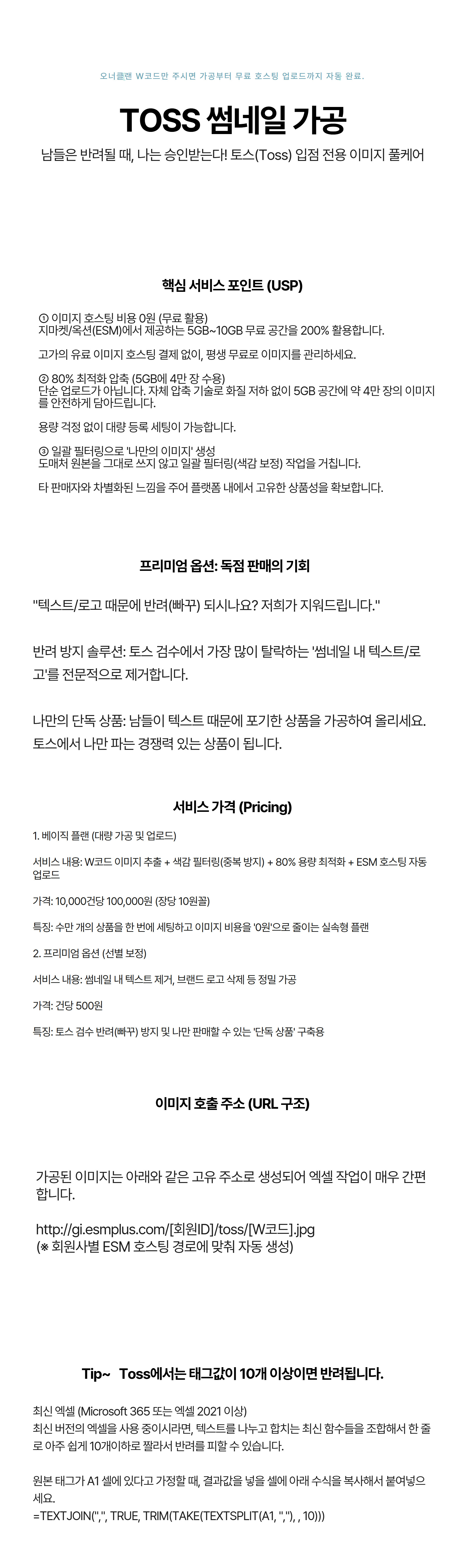 [토스전용] W코드만 주세요! 이미지 가공+ESM무료호스팅 자동업로드