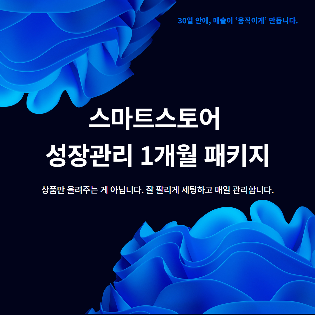 스마트스토어를 운영 중이지만 매출이 정체되거나 관리가 어려우신가요?스마트스토어 성장관리 1개월 패키지는 단순 등록이 아닌,상품 노출·클릭·판매 흐름을 30일 집중 관리로 다시 살려내는 프로그램입니다.한 달간 순환갱신, 품절점검, 배송세팅을 통해 팔리는 구조로 전환시켜드립니다.